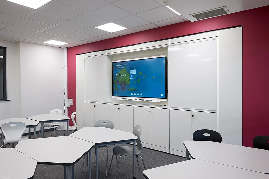 Learnstor provided bespoke teaching walls integrated into alcoves, classrooms and additional strategic breakout zones within a highly attractive environment.